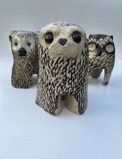 Stoneware clay, black stain, slip , glaze.